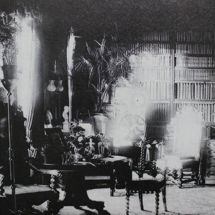 This photograph that graces the cover of this new release from Sana Obruent was taken in the library in Combermere Abbey by Sybell Corbet in 1891 . The figure of a man can faintly be seen sitting in the chair on the left. His head, collar and right arm on the armrest can be clearly made out. This is reputed to be the ghost of Lord Combermere.